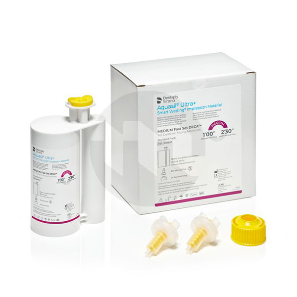 Aquasil Ultra+ é um material de impressão VPS, adequado para todas as técnicas de impressão. O produto foi optimizado para funcionar no momento em que o dentista mais precisa dele, durante a moldagem intra-oral. Nesta altura, o nível de detalhe é ótimo e o risco de formação de bolhas e rasgões é minimizado. O Aquasil Ultra+ está disponível em diferentes viscosidades, em diferentes tempos de trabalho e de presa, bem como em diferentes apresentações. O Aquasil Ultra+ é um material que proporciona ao profissional um desempenho adequado e diferentes opções para satisfazer as necessidades geradas durante a moldagem - Desempenho clínico optimizado - Hidrofilicidade melhorada - Elevada resistência ao rasgamento - Secagem rápida (2'30'' minutos) e secagem regular (5'00'') - Sabor a menta