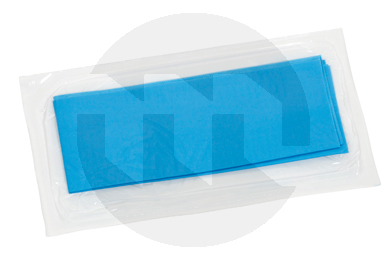 Estéril, em tecido. Não tecido, absorvente e impermeável, sem desprendimento de fibras.
