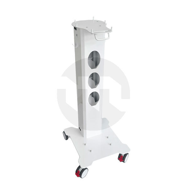 Carro rodado (360°), robusto, compacto e seguro. Fabricado em aço esmaltado branco e projetado especificamente para o transporte dos equipamentos: D_PROPHY FLOW (jato de bicarbonato) e D_PROPHY FLOW PLUS (ultrassons/destartarizador e jato de bicarbonato). Organiza todos os cabos internamente, garantindo uma estética limpa e funcional, além de facilitar a limpeza e a manutenção, eliminando qualquer risco de contaminação cruzada. Máxima ergonomia, manobrabilidade e segurança em todos os movimentos: o armazenamento é simplificado mesmo em espaços reduzidos. As duas rodas dianteiras possuem freios para imobilização. Compartimentos para dispensadores e pó. Possui 3 compartimentos na parte frontal onde pode guardar tudo o que precisa (frascos de bicarbonato ou glicina, frascos/tanques de reserva, etc.) ao alcance das mãos, garantindo um trabalho mais higiênico e maior eficiência.