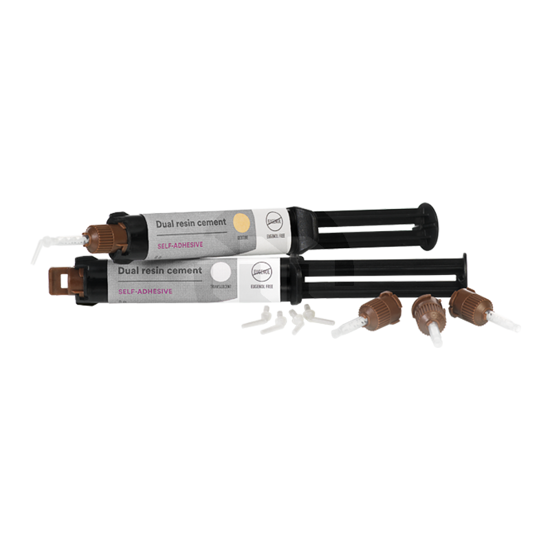 Disponível em duas tonalidades (dentina e esmalte), permitindo adaptar a tonalidade do cimento à do dente e da incrustação.