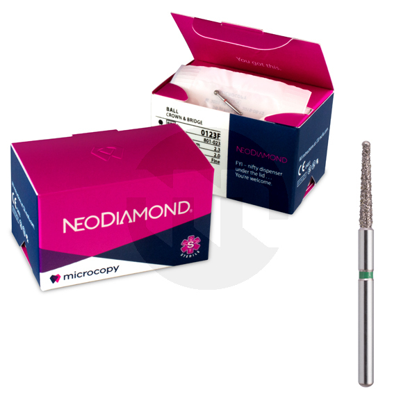 Brocas de diamante esterilizadas Neoendo da Microcopy. Brocas para endodontia de utilização em um único paciente (SPU). Evite a contaminação cruzada, diminuia o tempo de preparação e os custos, reduza o risco e o trauma do paciente e proteger a sua turbina.