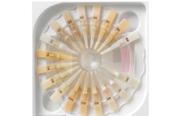 Guia de cores em resina composta submicrométrica formada por partículas esféricas uniformes.