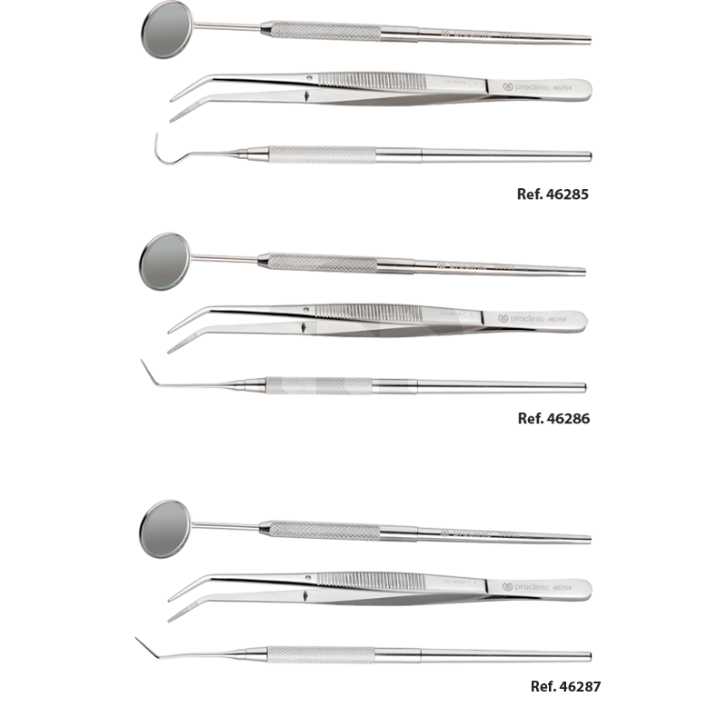 - Configuração: Kit 3 instrumentos (Pinça + Espelho + Sonda).