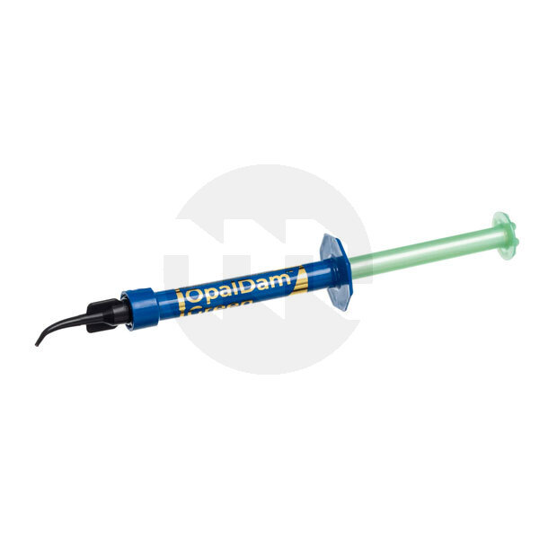 A barreira gengival fotopolimerizável OpalDam é um adesivo passivo, uma resina à base de metacrilato (selante) utilizada para isolar o tecido adjacente aos dentes a serem clareados. Pode ser usada para proteger os dentes vizinhos durante o clareamento de um único dente. A barreira de resina OpalDam reflete a luz para minimizar o calor e a sensibilidade do tecido durante a polimerização. Cor verde.