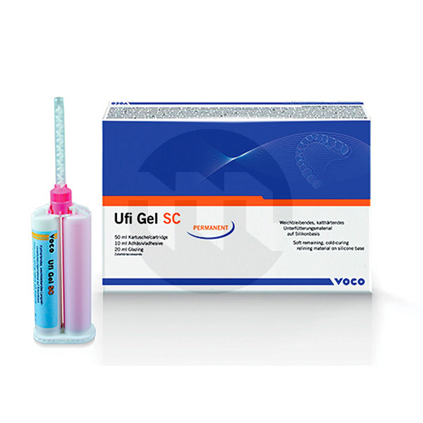 Cartuchos de silicone macio para rebases. Indicado para material de rebasamento macio permanente para próteses totais e parciais, tratamento de pontos de pressão, melhora a liquidação e o suporte, como almofada em processos alveolares agudos, relines em implantodontia e readaptação de próteses. O Ufi Gerl Soft SC é um silicone de excelente qualidade e permite um rebasamento completo em uma única sessão na clínica. Adesivo especial para maximizar a adesão do silicone à prótese. Simples, fácil de usar e econômico. Biocompatível (sem metacrilatos). Sabor e cheiro neutros. Cor estável e estética com efeito camaleónico. Uso em laboratório: menos etapas do que outros materiais de polimerização a frio. Para todas as próteses baseadas em PMMA. Aplicação fácil e rápida em ultrapassagens diretas e indiretas. Excelente adaptação em detalhes delicados para colocação precisa da prótese. Resistente contra produtos de limpeza de próteses convencionais.